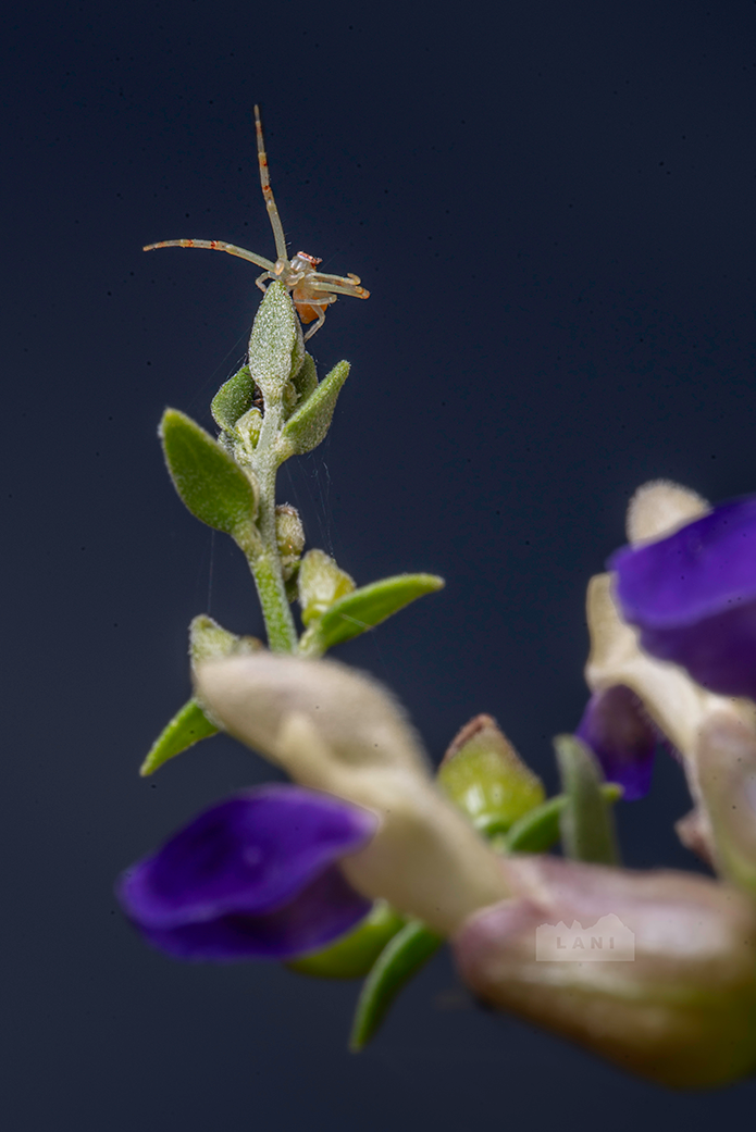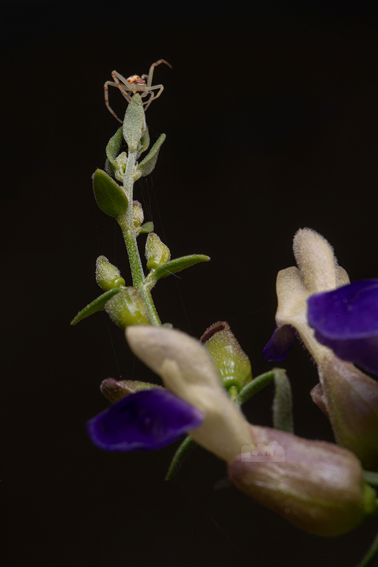 One net observation was a small spider conducting an orchestra of Scutellaria mexicana (Mexican bladdersage or paperback bush).